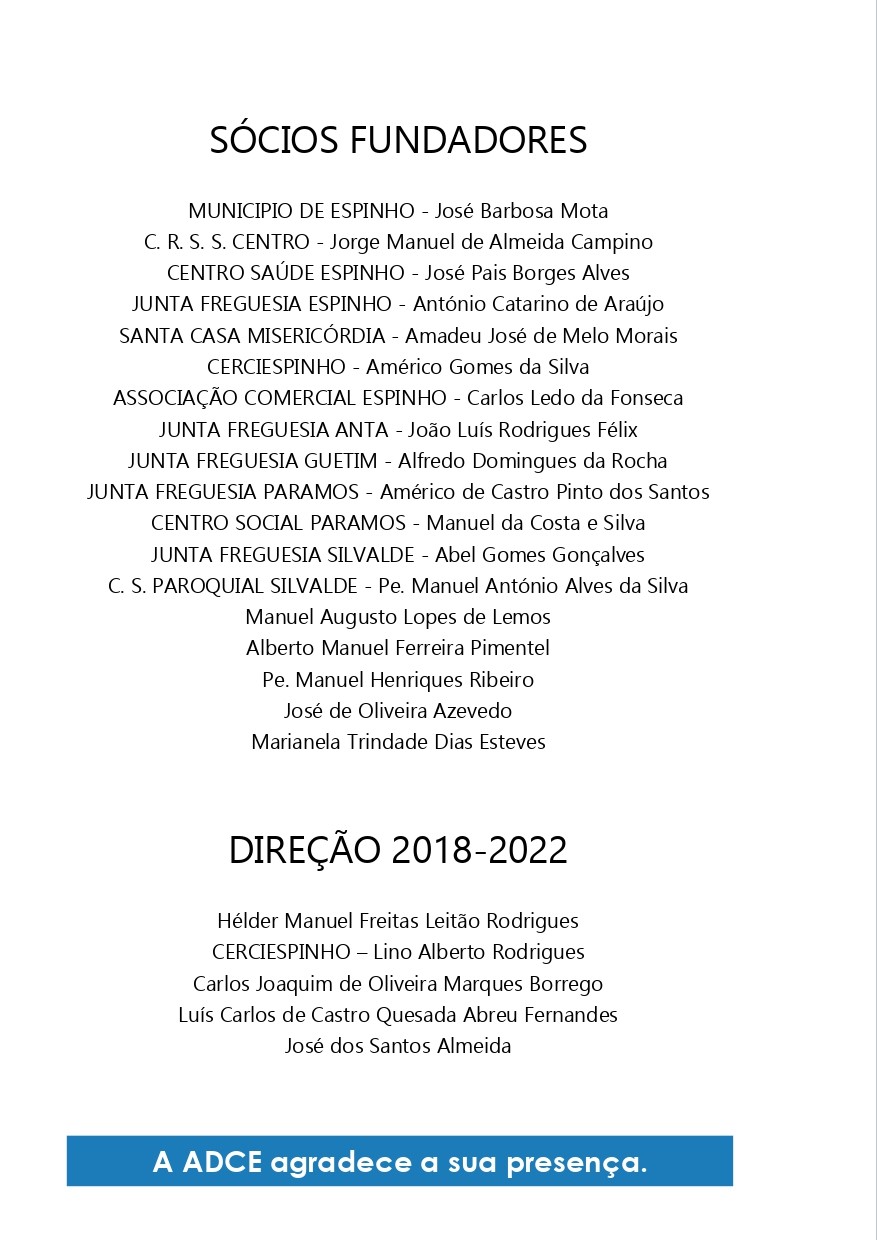 Esta cerimónia, presidida por Hélder Rodrigues, presidente da direção da ADCE, contou com a presença da vereadora com o pelouro da ação social, Leonor Lêdo da Fonseca, em representação da autarquia, bem como de Fernando Mendonça, Diretor do Centro Regional de Segurança Social de Aveiro.